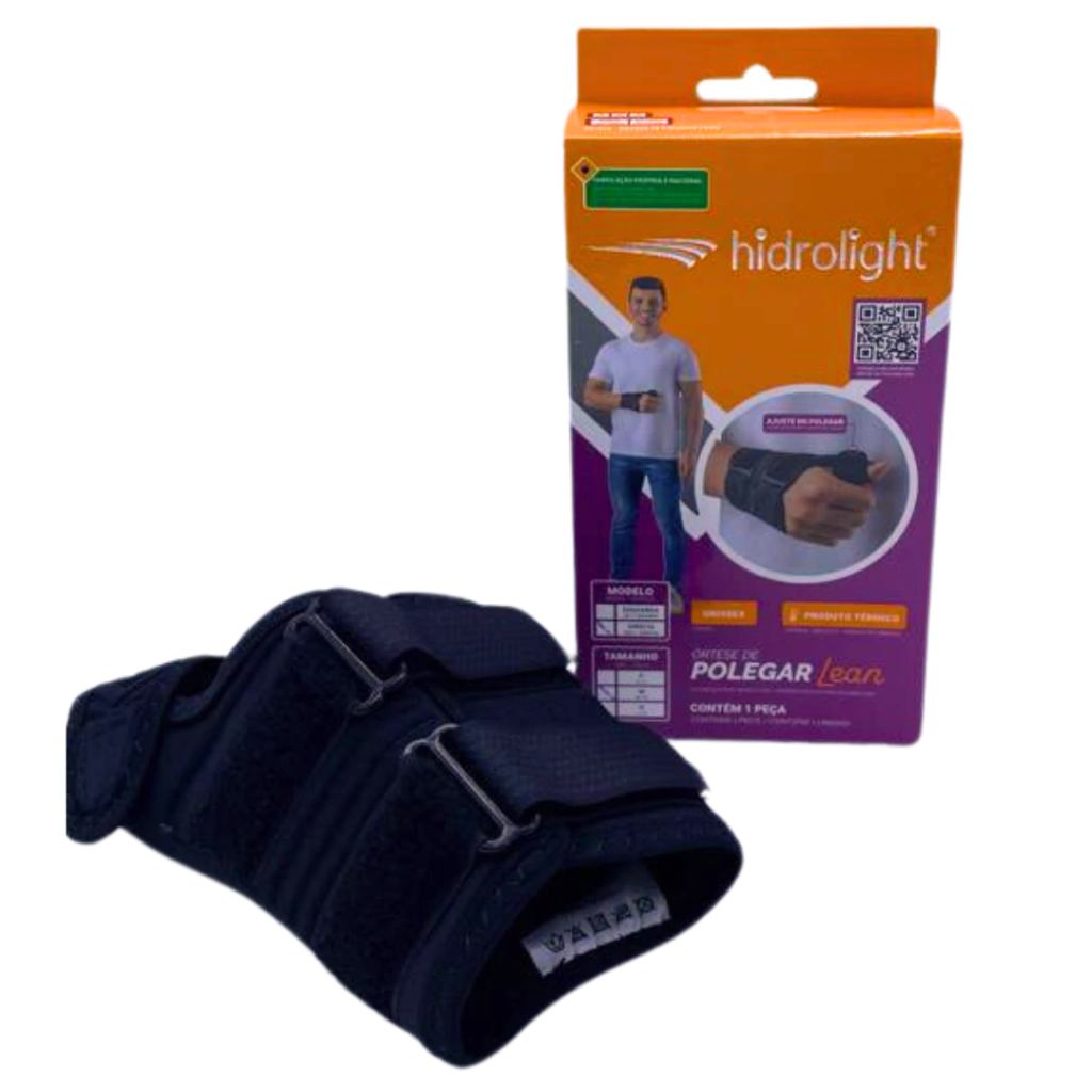 A Órtese de Polegar LEAN® Hidrolight foi desenvolvida para estabilizar e alinhar o dedo Polegar e por ser em neoprene, que é isolante térmico, auxilia e acelera o processo de cicatrização da lesão. Possui suporte interno para facilitar a colocação do produto. A tala imobilizadora contempla desde o polegar ao punho para aumentar a imobilização. A compressão do polegar pode ser ajustada de acordo com o fecho aderente, que personaliza essa compressão conforme a necessidade e indicação médica ou fisioterapêutica. O design é exclusivo, elegante e o produto não possui componentes oxidantes, aumentando o tempo de vida do produto.