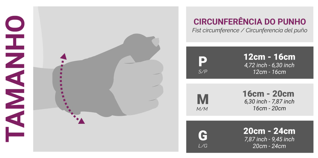 Tamanhos: P 12cm - 16cm | M 16cm - 20cm | G 20cm - 24cm